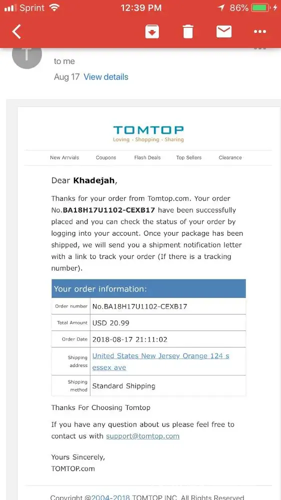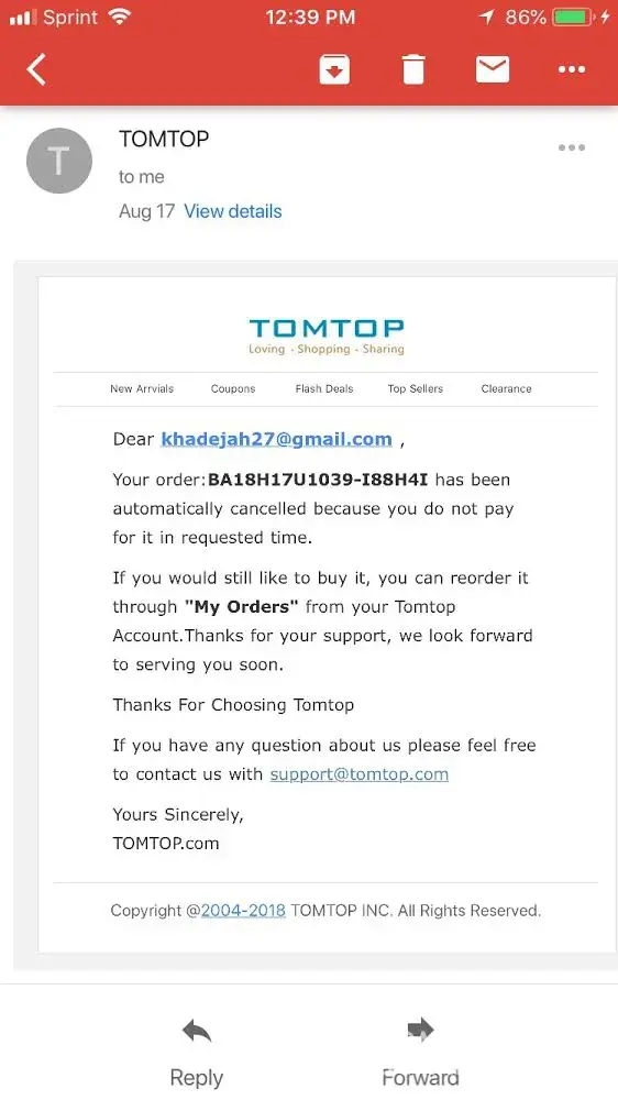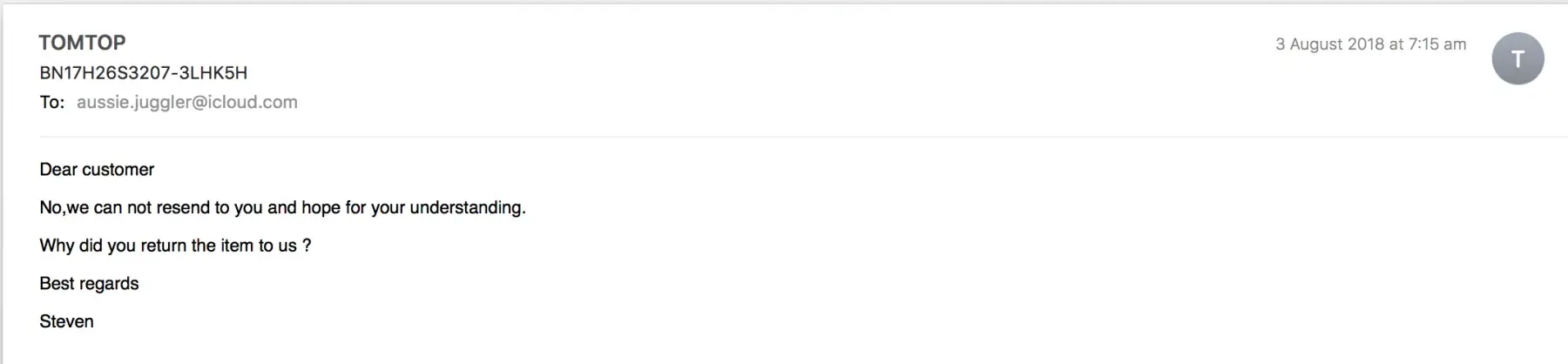 TomTop Group order no: an18e28f4643-u2gnsh-non delivery