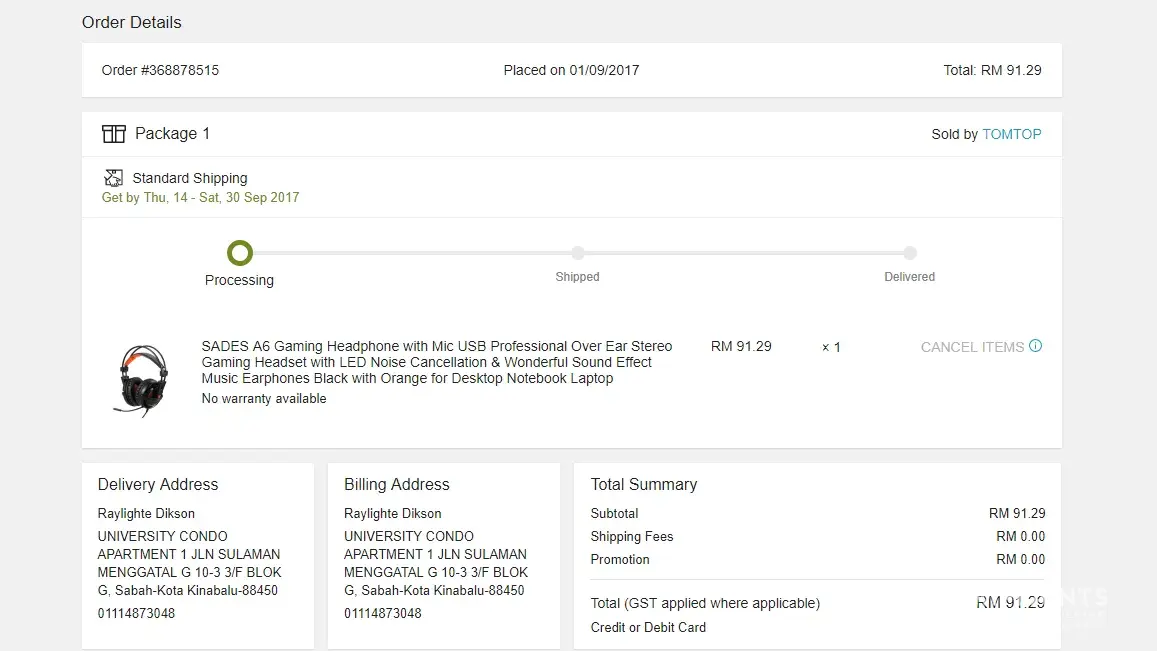 I'm sorry to ask, but I'm a bit concern about this product, it been 7 day since I order the product and it haven't been shipped yet, here is the order tracking number #[protected] . This is the link to page : https://www.lazada.com.my/?spm=a2o4k.order-details.0.0.CW77YF . However it cannot be open already, it seem that you already delete the page and I assume that the product already sold out . Please contact me as soon as possible . This is my email : raylighte1998gmail.com . Thank You . Also I already attached the billing information .