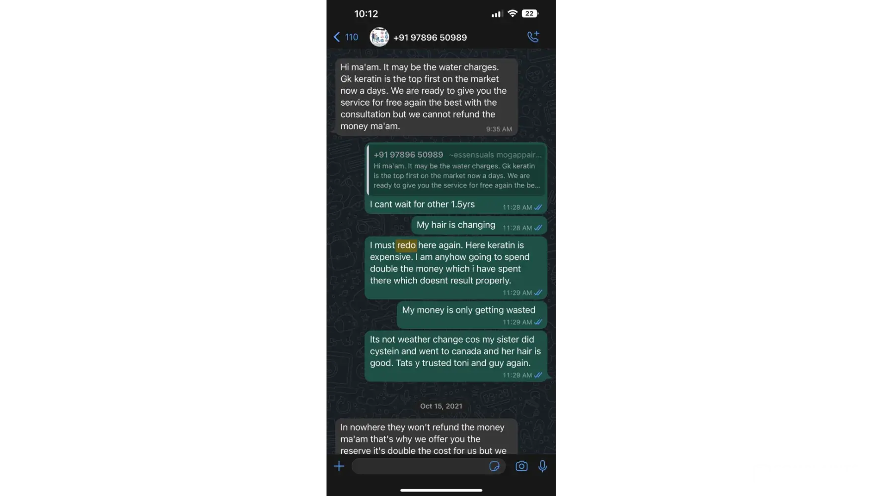 To my dismay, my hair returned to its previous state, full of frizz, roughness, and waves. It was nothing like the results I experienced immediately after the treatment. I promptly contacted your salon on the following day to share my concerns, and a representative requested that I visit the salon to assess the issue.
