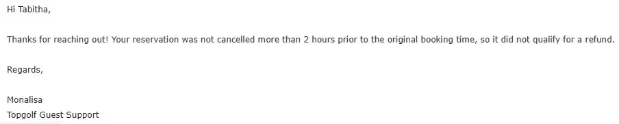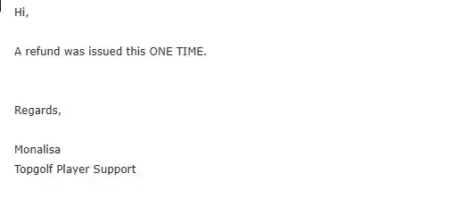 I made two reservations at Topgolf El Segundo but had to cancel. When I called to cancel, I was assured over the phone by a Topgolf team member that I would receive a full refund for both transactions. Based on that confirmation, I expected the refunds to process within 3–5 business days as advised.