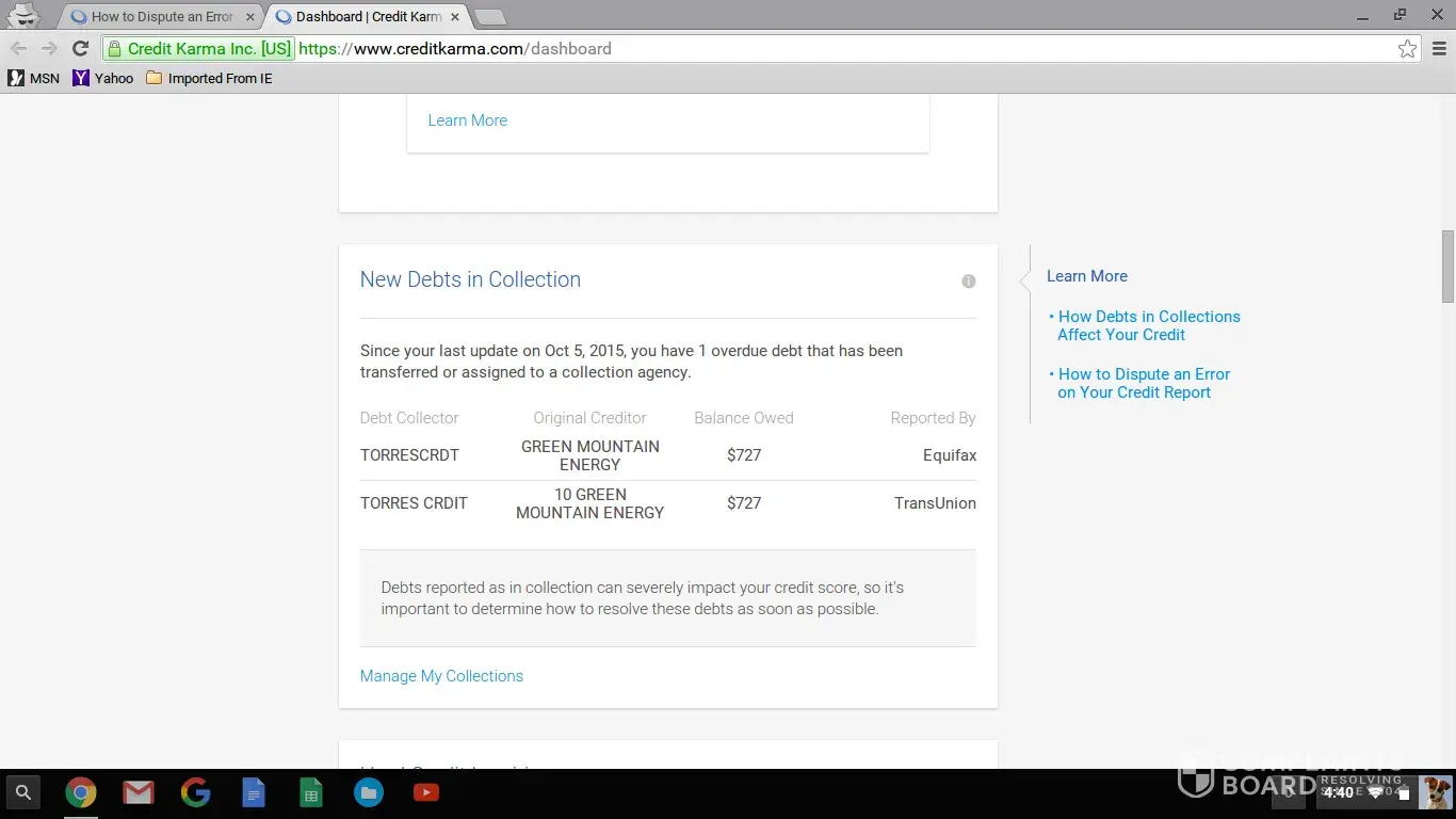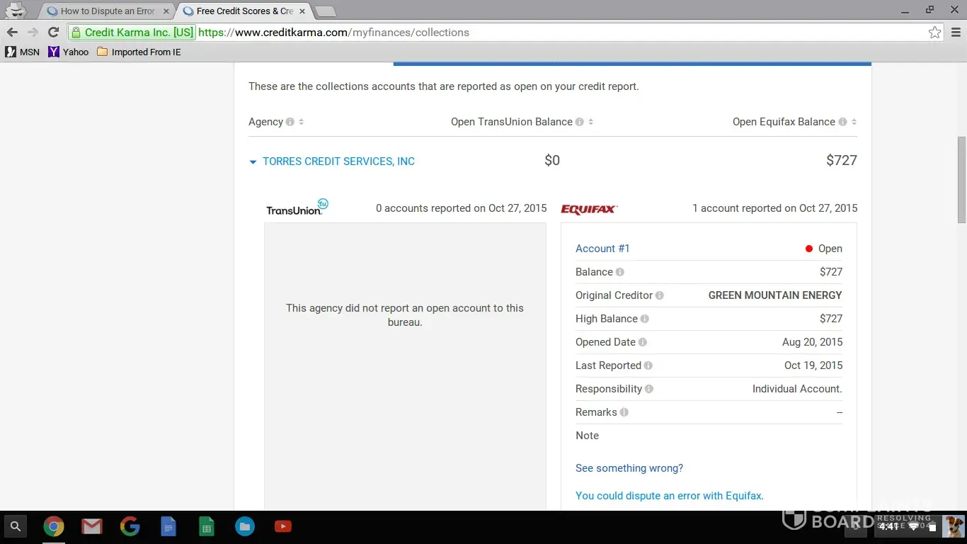 Torres Credit Services Dispute