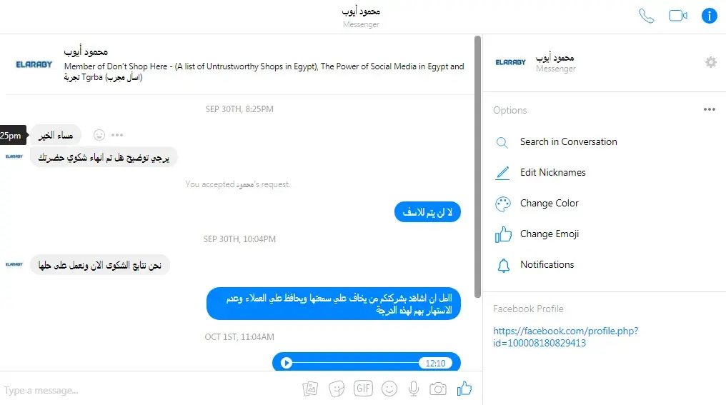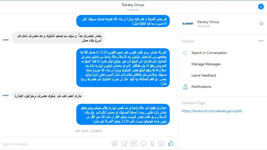 I share my probleme on facebook as below and no one answer me from elaraby :-