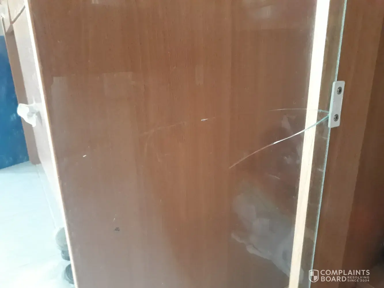 I looked down and saw that he had his knee on the glass door pushing it back with his knee. He did say he was sorry but I was shaking my head about what he had done. I noticed they where working way too fast wanting to get out to go to the next job.