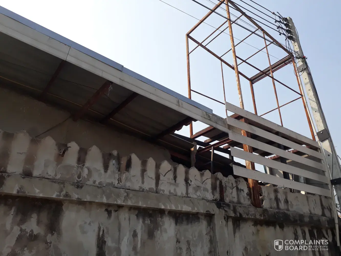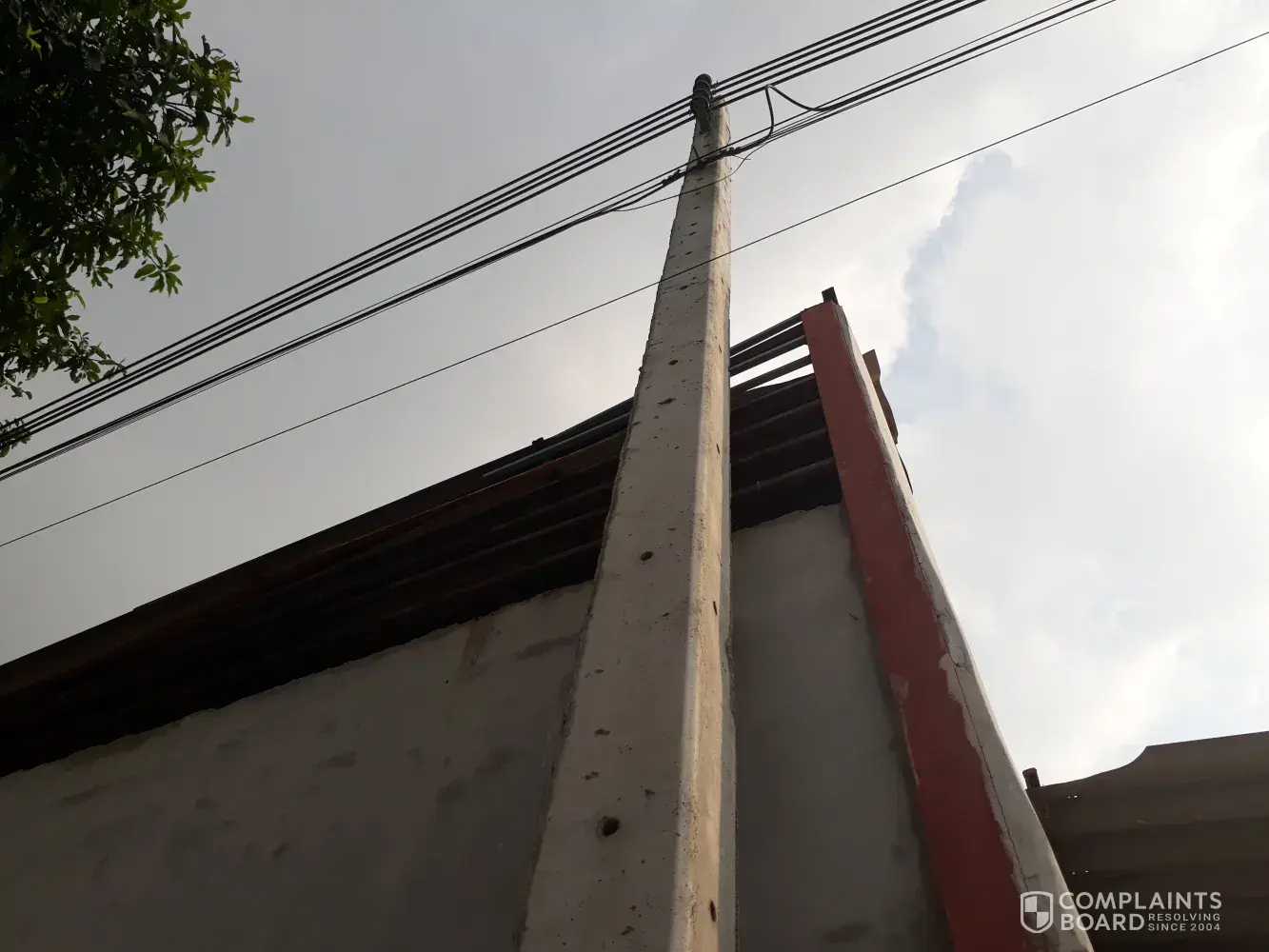 I then looked outside to see how they had fed the cable and noticed another shocking job had been done. They missed a concrete power pole then ran the cable from the power pole to the top of a 1.8-meter wall then back up to the batten purlin of the roof, instead of going straight to the purlin under of the roof.