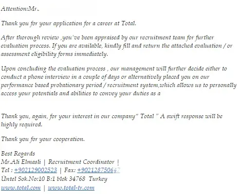 Total oil and gas company - fake job offer?