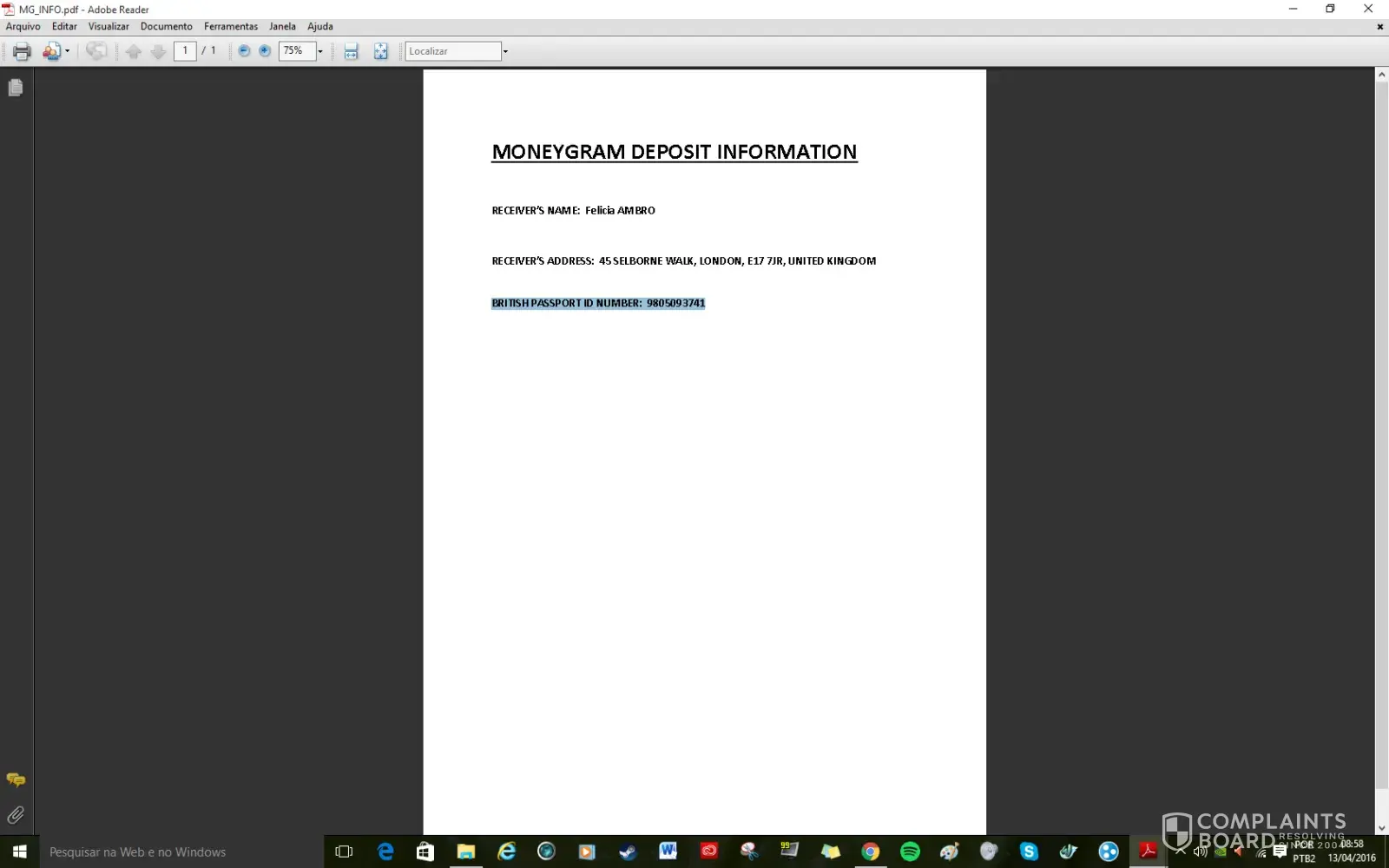 However ComplaintsBoard has detected that: