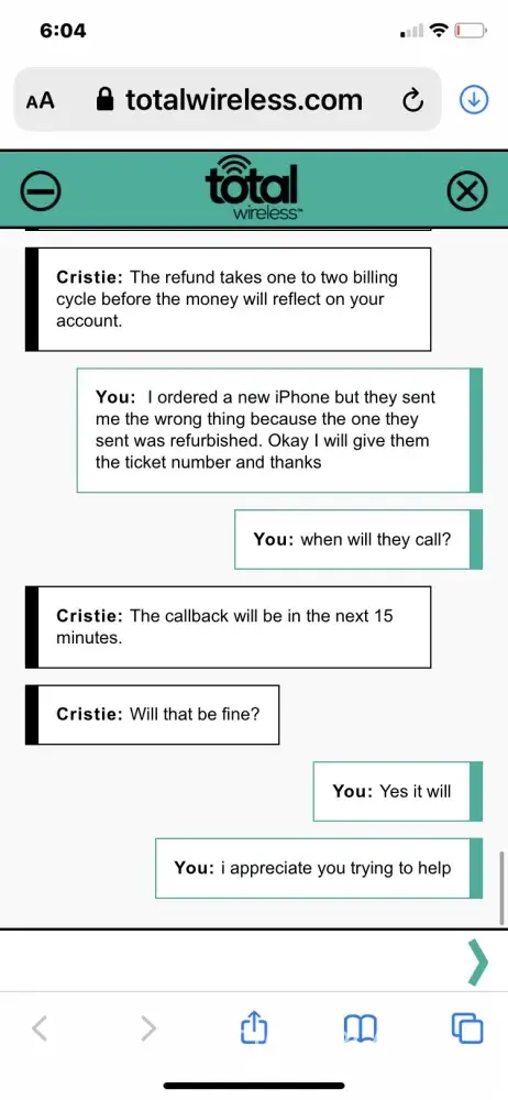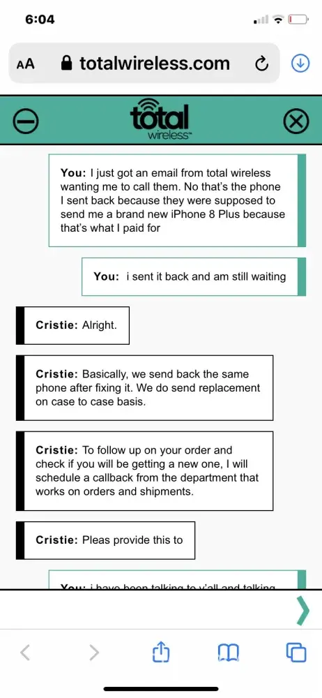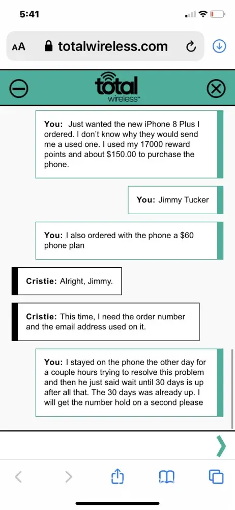 Total Wireless I purchased a new iphone 8 plus from the total wireless online store