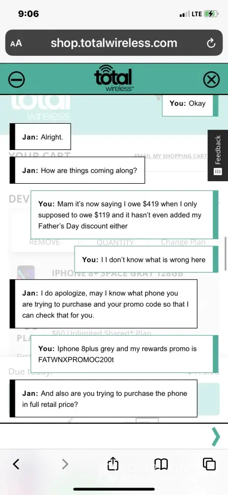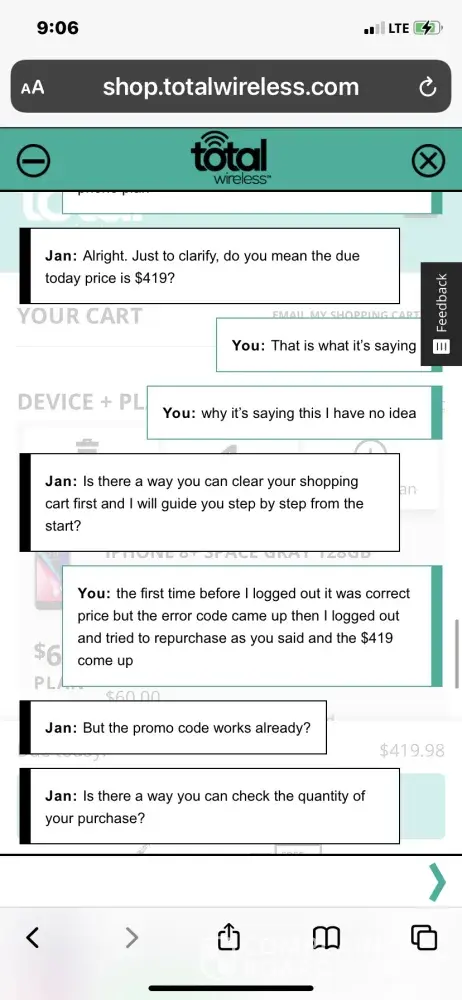 Hi Chet Zelgowski. Please accept our deepest apology for this experience. We do not want our customers to encounter issues about the service we offer. Don't you worry. We will take further steps to remedy this problem as soon as possible. For further assistance, please chat with us via this link https://www.totalbyverizon.com/support/contact-us, or call us at [protected]. For your convenience, our representatives are available Monday-Sunday from 8:00 AM to 11:45 PM EST. You can also use our self-service menu by simply texting the word HELP to 611611.