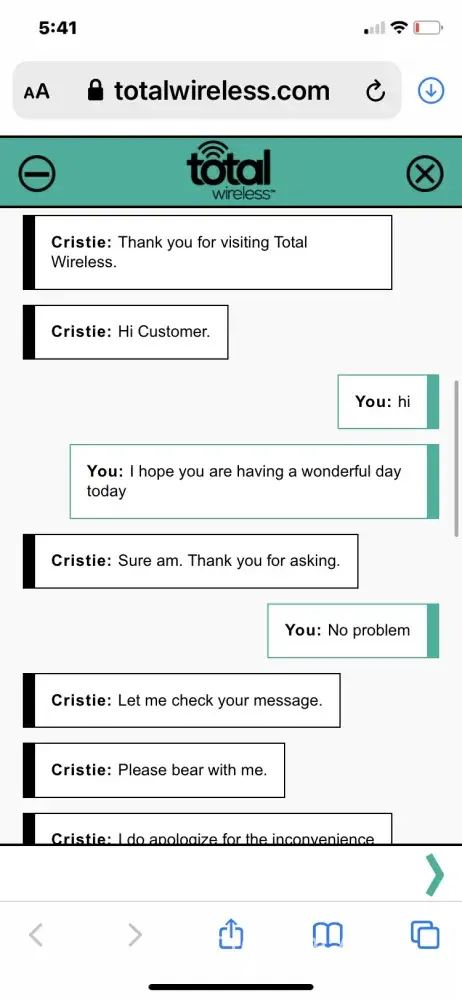 This is scripted. Typical of Total by Verizon. I hope Total by Verizon starts doing and providing the service we pay for and stop playing with people's emotions and our money!