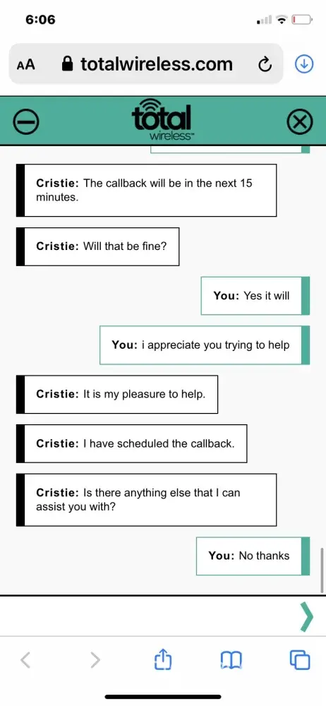 Total Wireless No help tech support