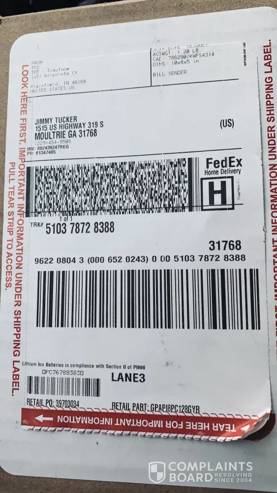 Verified customer This complaint was posted by a verified customer. Learn more