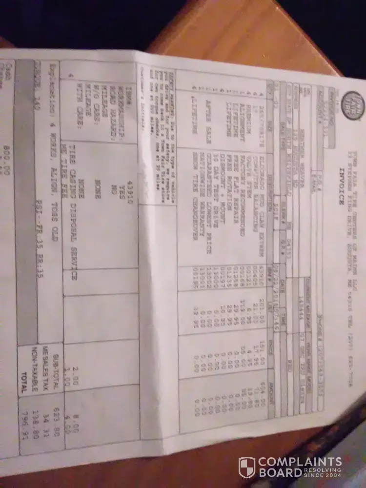 Read full complaintinstalled wrong size tires