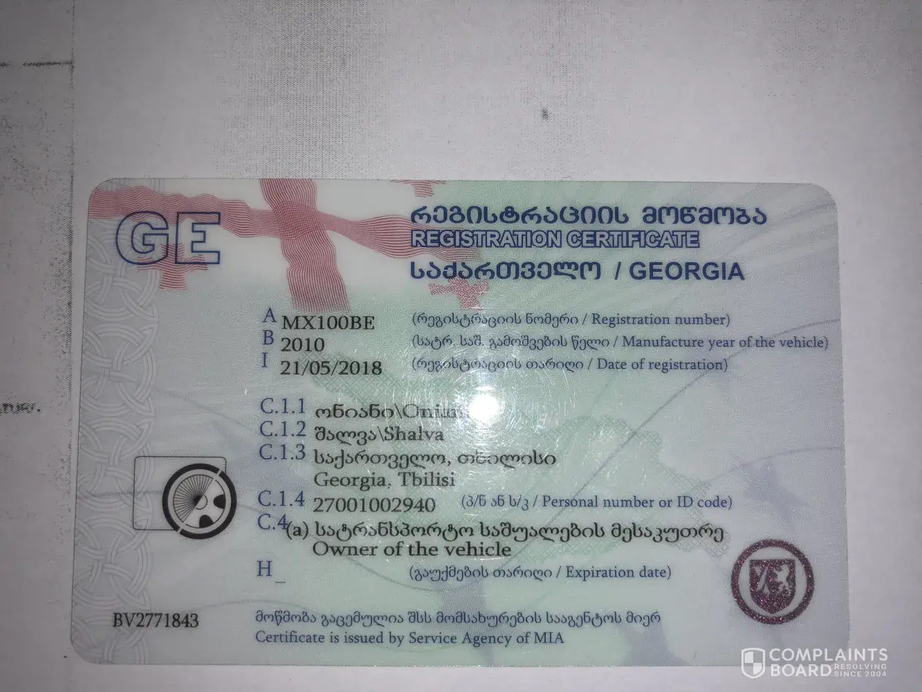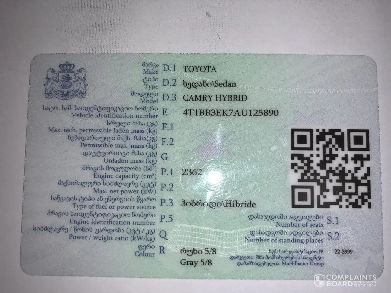 I am Shalva Oniani (ID:[protected]; 15.08.1987) citizen of Republic of Georgia. I have toyota camry hybrid 2010, it has a problem
