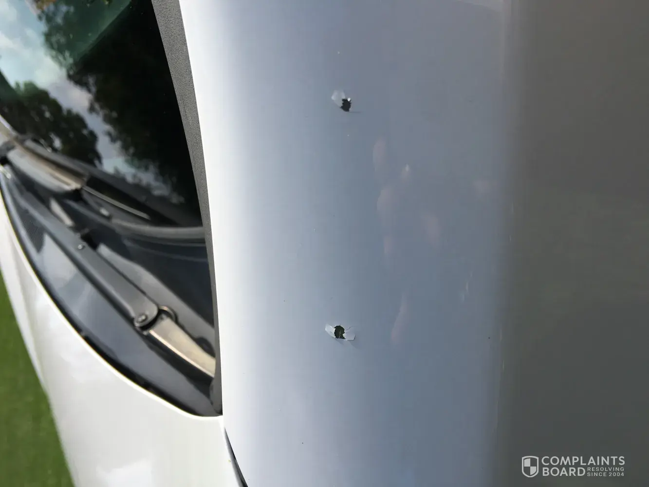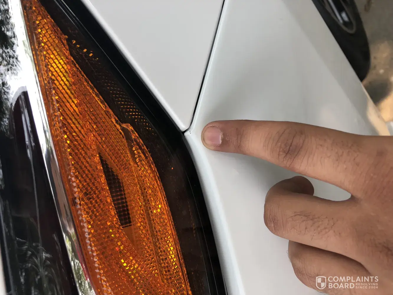 Pictures of the damage, head light beam, and missing paint from the bumper after they attempted to paint it.