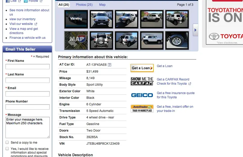 I negotiated the purchase of subject vehicle, a 2009 Mercedes Benz G55 AMG with Landers Toyota during 45 plus days of thorough communications and detail negotiations online via documented emails and phone calls. After inquiring regarding ALL pertinent information on history, mechanical and physical condition of said vehicle I was assured by Landers Toyota that their vehicle was in “Mint over all condition”, “Immaculate mechanical condition”, and “Showroom cosmetic condition”. “A Perfect vehicle free of any/all damages, i.e., dents, dings, nicks, scratches, rips and tears or any/all problems.” Based on that quotation of vehicle condition confirmed by Landers Toyota I entered into a contractual agreement to purchase said vehicle from seller and Landers Toyota agreed to purchase our (2) trades from us.