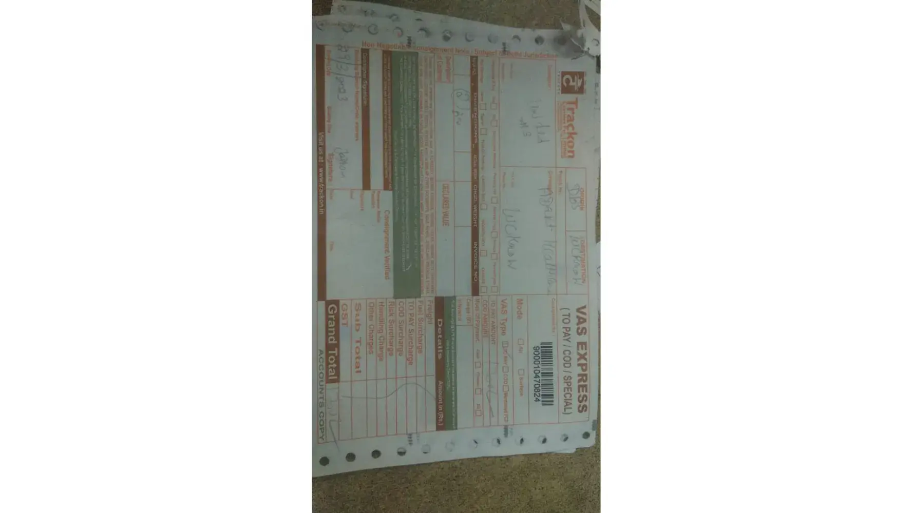 [protected] I have booked this order from derabassi to lucknow by Air on 29 march and give Rs1700 for that but the courier get delivered by surface.