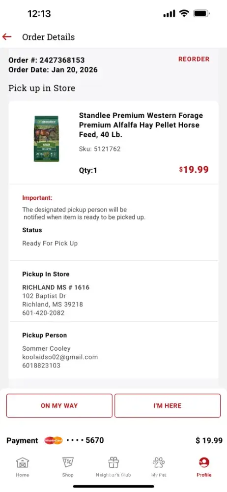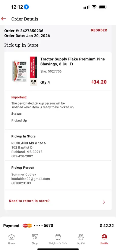 On Wednesday 1-21-26 at 11:18AM I received a text message saying that my tractor supply order was picked up, but it wasn’t me. I called the store to see if there was a mistake. The woman that answered was clearly annoyed that I even called. I told her my name and order # and she said she had no record of me ordering anything at that location and gave me...