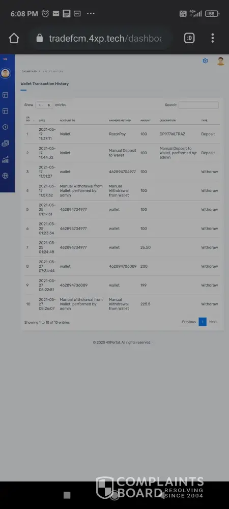 My money was stolen in Tradefcm web portal. Manually withdraw from Wallet, performed by admin. How dare they di like this. It's very cheap cheating. Scammers be alert I need my deposit amount.
