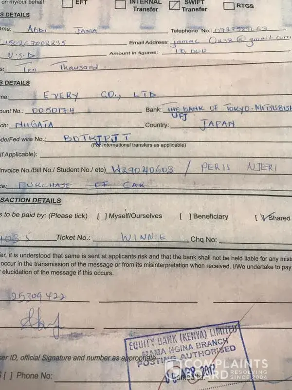 Hello, My name is Elizabeth from Jeytee Car Sales and Importers. I registered the Company on February 2017 after quitting from SBT Japan Nairobi Office where i was an Account Manager for 3 and a half years. Between April 9th and 20th of this year, i bought a Harrier and a Fielder worth 26, 500 USD from Every Co which were listed as an In-Stock. I got the company though Trade car view but the owner preferred i deal with him direct. After making 100% Payment to the owner of the Company Mr Watabe, he promised to ship both units on 29th of April. He never shipped the cars and from there it has been lying stories after the other which he gives through whatsapp texts since he never picks the calls. I came to meet other five clients who has been a victim of Watabe's fraud before. Once he gets the money, he quits to answer your calls and communicate through whatsapp texts. To the lucky ones he refunds half the money after pushing for more than one year or sends wrecks of cars which you never paid for.I have supporting documents from his past victims. My clients has reported me go the Police and am at the verge of being taken to court for fraud. I request you kindly to assist me get my client's refund since he don't even have the cars which i paid for. He puts other dealers cars on his website at a cheap price to entice unsuspecting and clueless clients. Once you make the payments, you are left with the agony of dealing with Police and court cases in your Country as he sits somewhere in Japan enjoying your clients money and move on to the next target as if nothing happened. I request you also to pull him out of Tradecarview site and save many Kenyans from this fraudster.