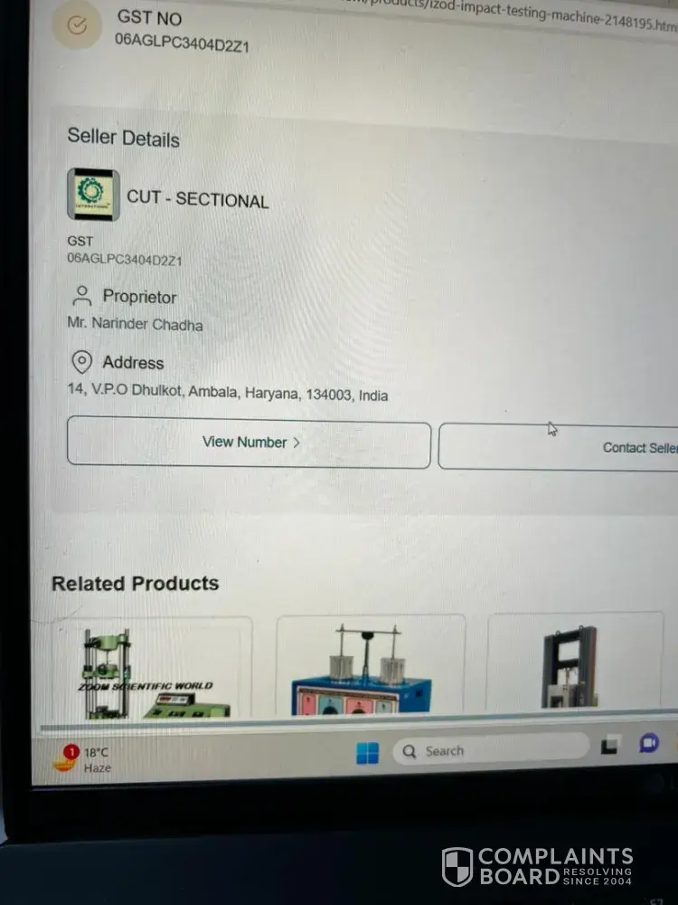 I have ordered & made payment of Rs. 37661.99/- for Izod Testing machine on Trade India web site on 2march2024.