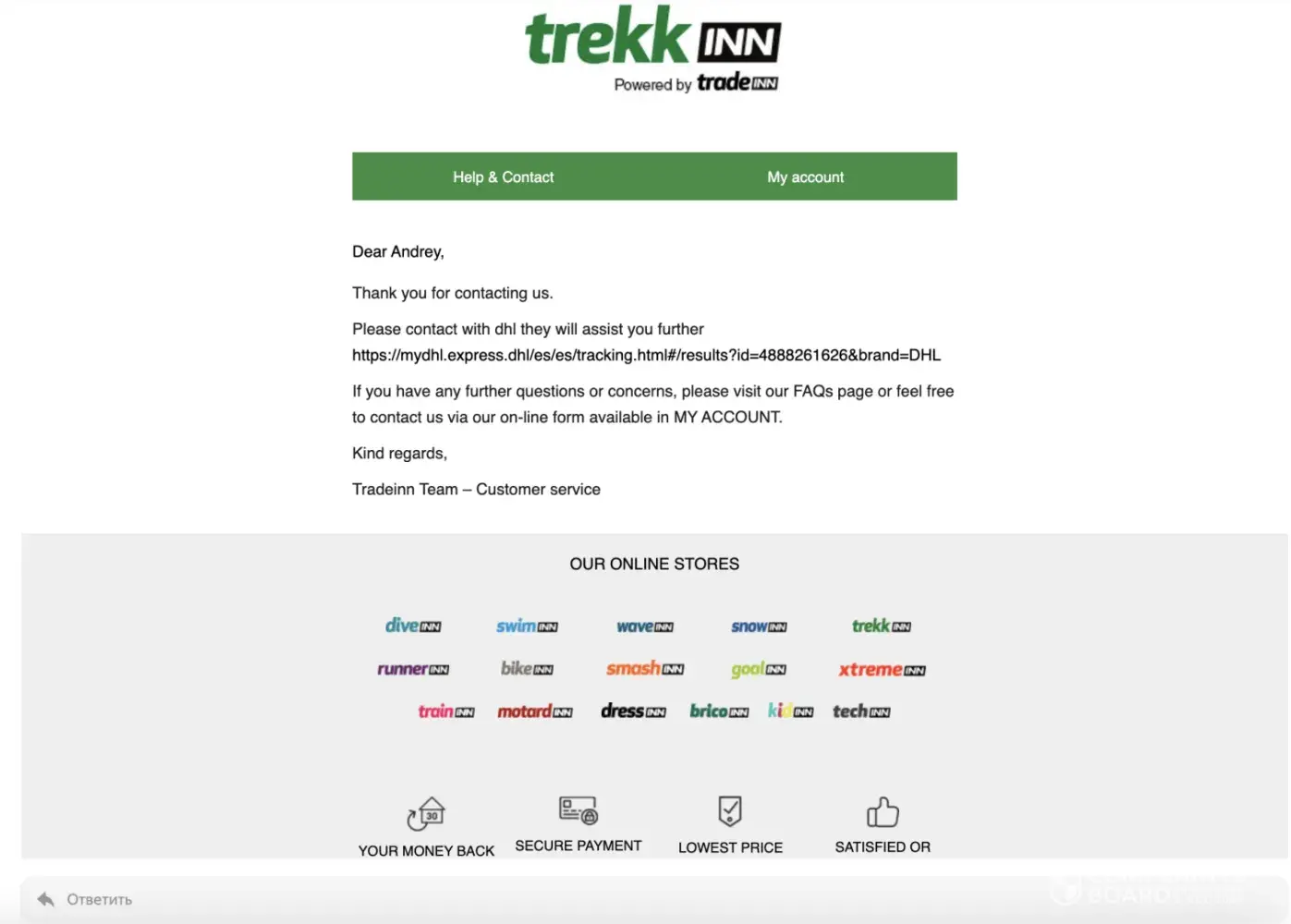 So, I decided to order some boots from TradeInn for 120 EUR. Unfortunately, the post company sent them back, and I didn't get to pick them up. What a bummer! But that's not even the worst part. Let me tell you what happened next.