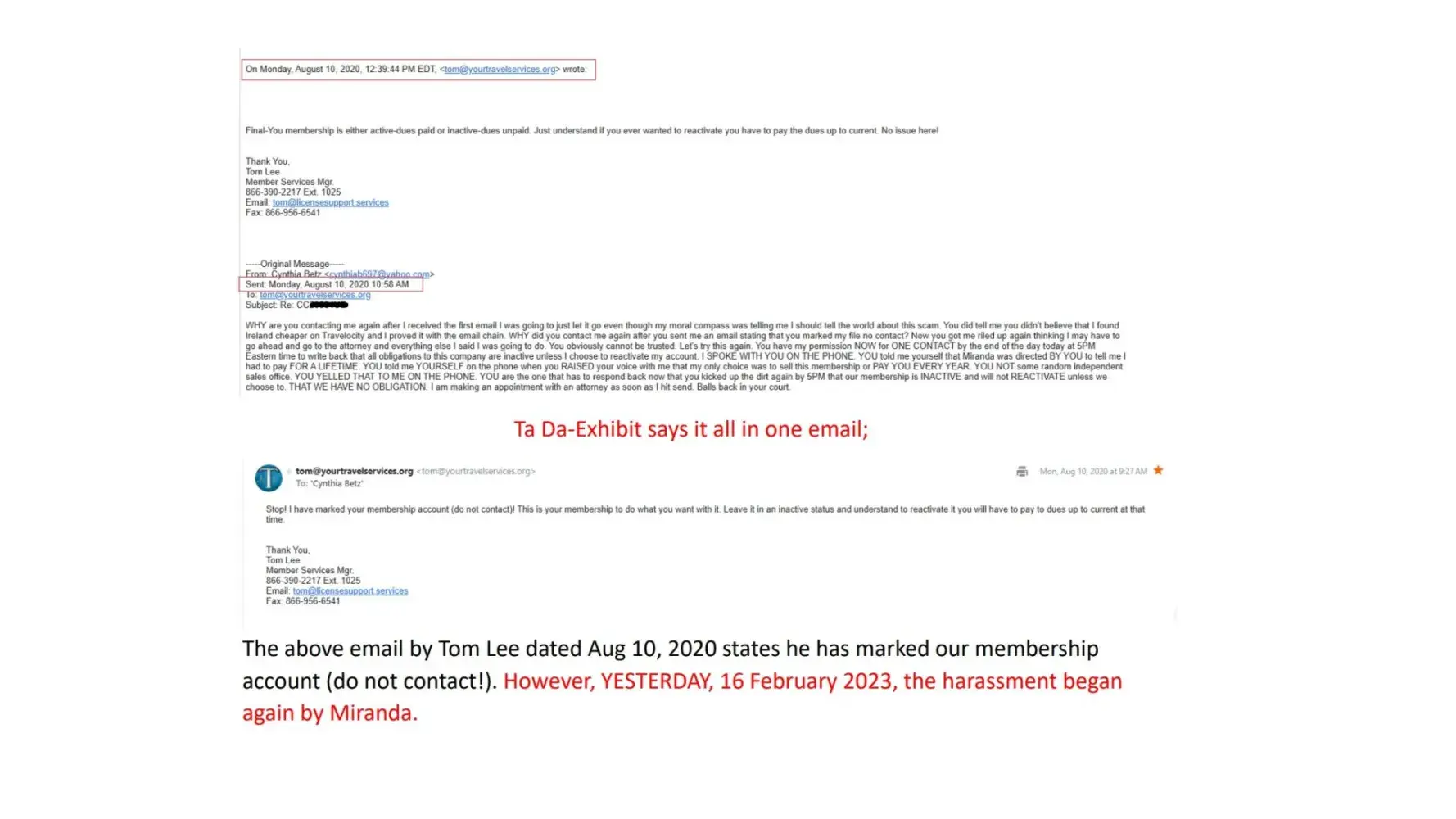 I attached email showing Mr. Lee (manager) at Coconut Club's response when I demanded they leave me alone. The language in his answer is quite clear. Membership is