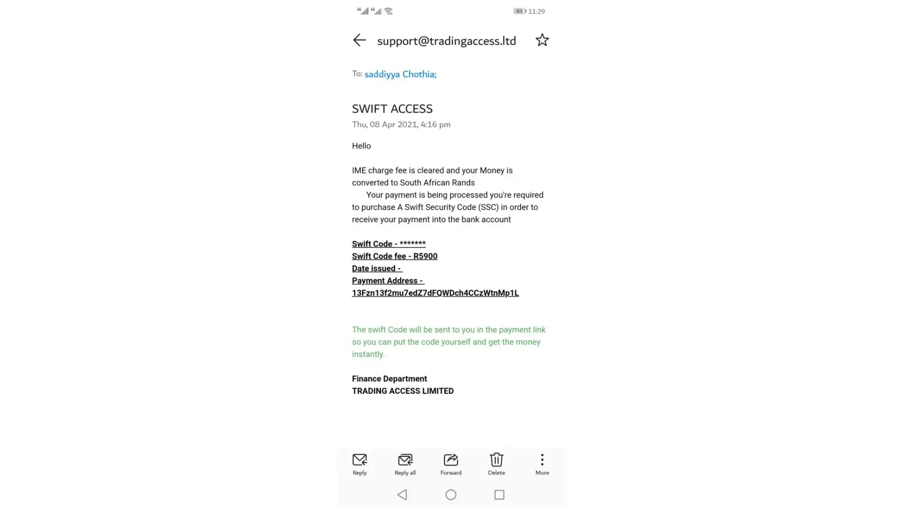 Earlier this year I was introduced to TA by this other lady Amber, then I invested but few moments later I recieved an email that said I had to pay 300USD of which I did But then right after thst I got another email telling saying for me to get my profits I have to pay R8800 of which I had just paid now recently & then I just recieved an email saying I need to purchase the ssc to getmy profits, I dont know if this is a scam or what but I want out so if there's anyone willing to help me out. please do cause ive lost hope