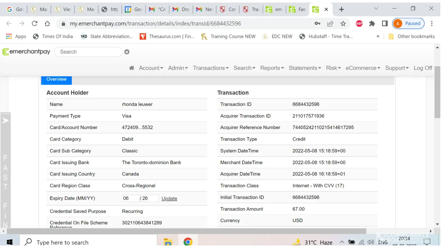 Upon checking, the payment is on chargeback status.