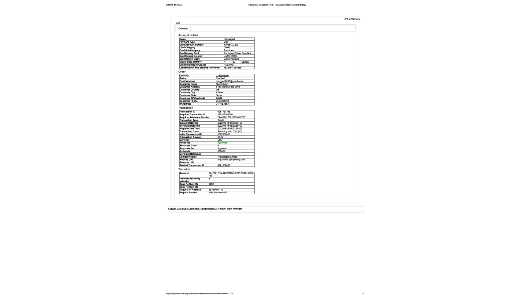 On Sept 12th, I purchased a training program and accidently purchased the printed book from TrainPetDog.com. The charges were $67.00 and 71.95. After I realized the mistake that I made and saw the online course and that it was nothing that couldn’t be found online, I requested cancellation and a refund of both items. The company never actually issued me a receipt so I issued a support ticket. I’m not trying to defraud anyone. I just want value for what I pay for. I followed their refund policy to the letter based on what was displayed on their site. The company said they would issue a refund and then later said they couldn’t issue because it was in charge back status.