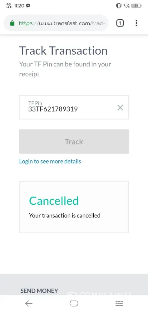 Transfast has replied to my complaint which is below, under the dotted line.