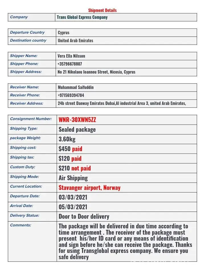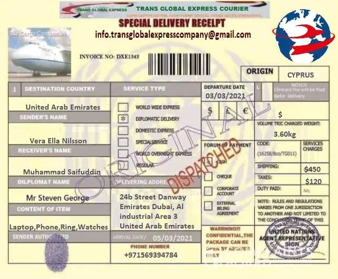 Transglobal Express Fake package