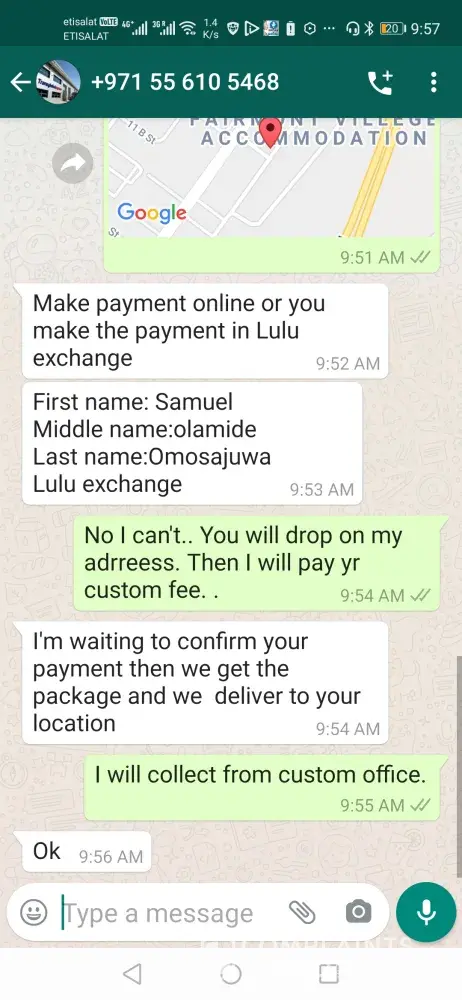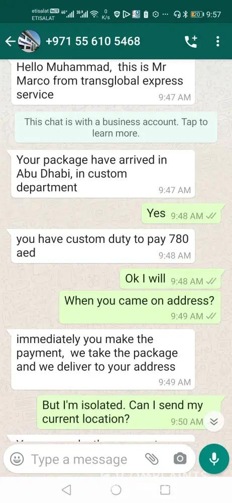 Hi sir. Today 5.3.2021. I received a call. Some one told I have your pakege from syprus. So if you have pay 780AED custom duty. (by online from LuLu) Then we will give you your pakege.