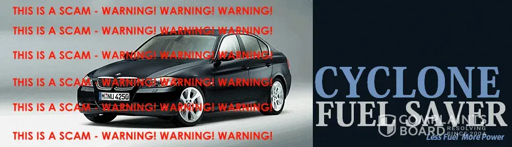 Read full complaintCyclone Fuel Saver - THIS IS A SCAM - WARNING! WARNING! WARNING!