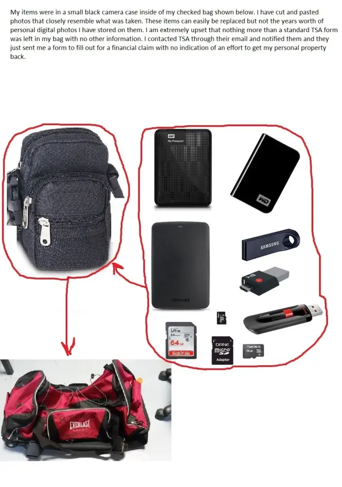 My name is Russell Joseph Pace and I am a frequent traveler in and out of Orlando Airport. I am currently feeling extremely ill over a small black bag I discovered missing from inside of my checked bag when I arrived at my destination. It contained three hard drives and a few thumb drives that have years worth of personal photos. These cannot possibly be classified as restricted items! A TSA form was in my bag but there was no explanation of why my items were taken. I have just learned that this happens frequently. So where is my property? Is there a place there in Orlando that TSA puts these items? I desperately want my property back. Please let me know who to personally contact and/or how to go about getting my property back without getting my lawyer involved. I appreciate anything you can do. Thank you.