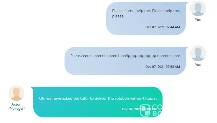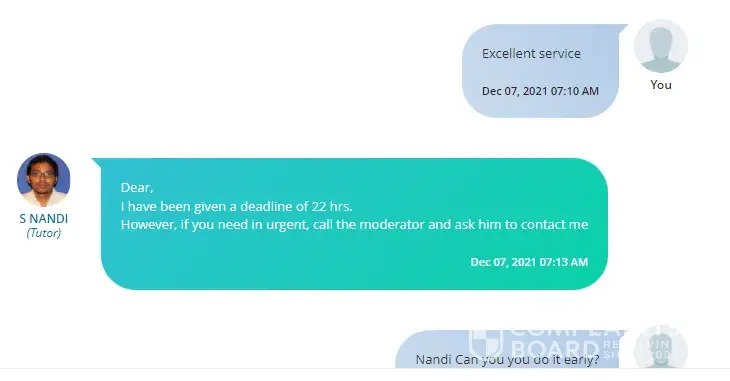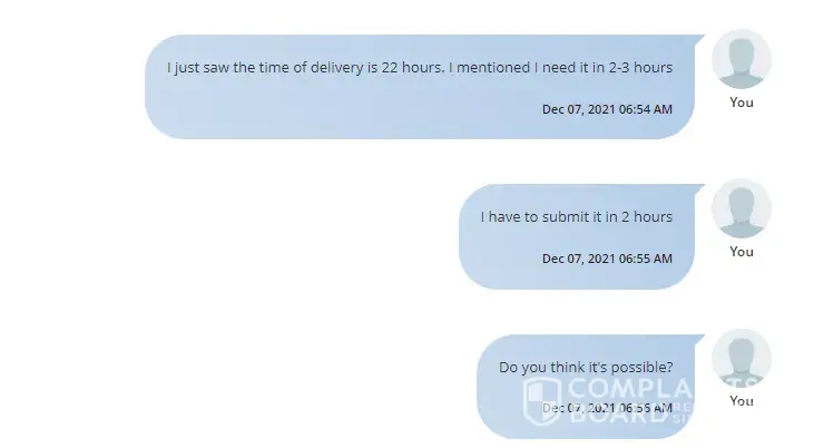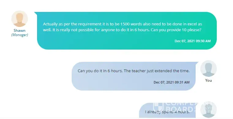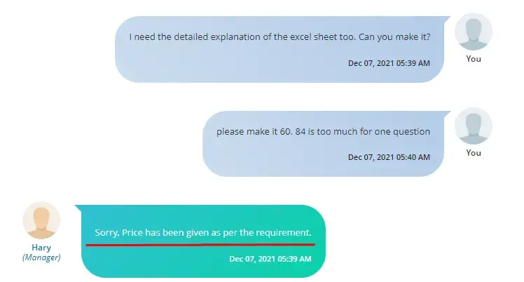 I bought their service and before I bought I informed them about my urgency and having limited time. I told them I don't have time and I selected their service of 2 hours (3 hours service, I can't recall 2 or 3 hours exactly but it is either 2 or 3 hours) and paid the cash with their discount offer. They assured me I will get quality service and there won't be any revision required if I pay them instantly. I was hesitant but I paid them after their assurance. After getting the money they extend the time to 24 hours. After 10 hours or so they delivered me incomplete answers. I specifically asked for the Excel part, it was not there and the quality of other work was not worth mentioning.