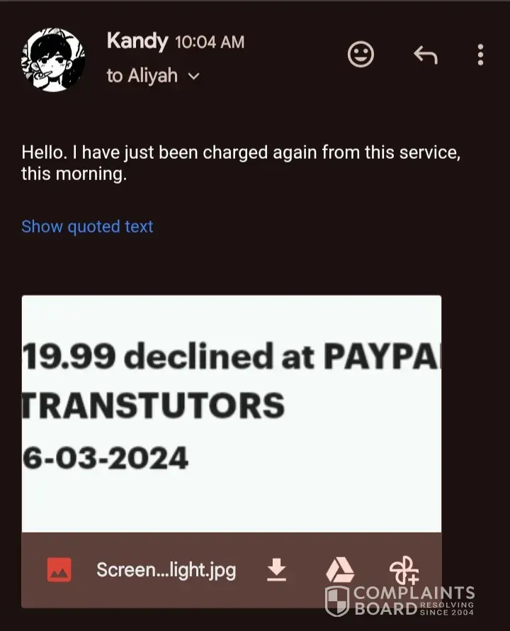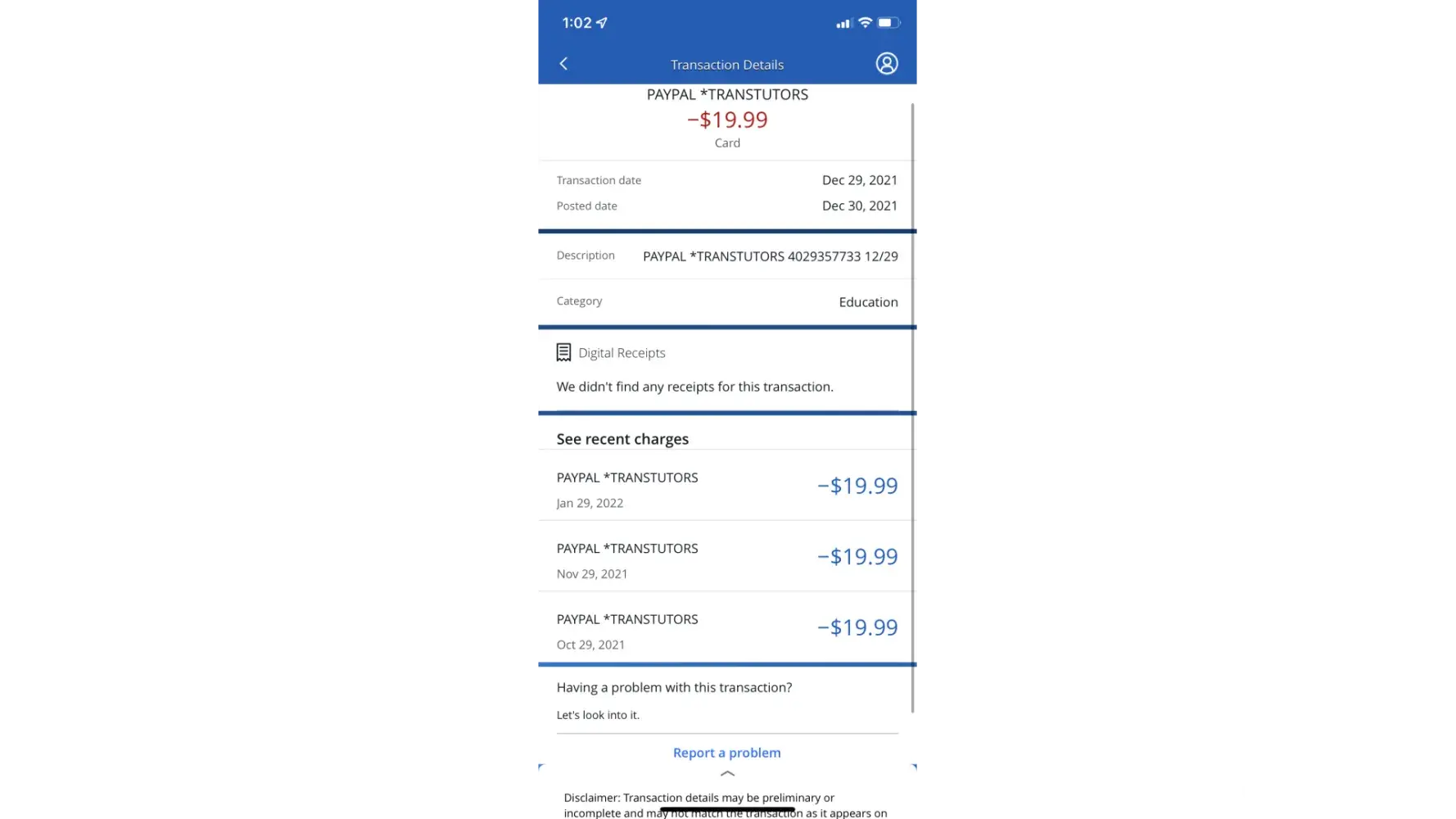 I am filing this complaint against transtutors because they ve been charging me me $19.99 for a one time service that was for 06/28/2021. However the have been billing me ever since ( for 7 months ) even though I tried cancelling my subscription. I reached out to them via email, an,I talked to a live chat representative and still nothing . I tried to reach my bank so they can block that merchant from my bank account but they cannot do so. I believe they are billing me via paypal.I dont have no way of contacting transtutors via phone number. I really am not happy and I am asking for a refund for those past 7 months.