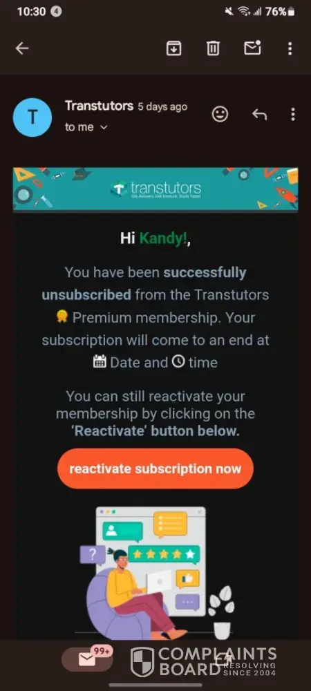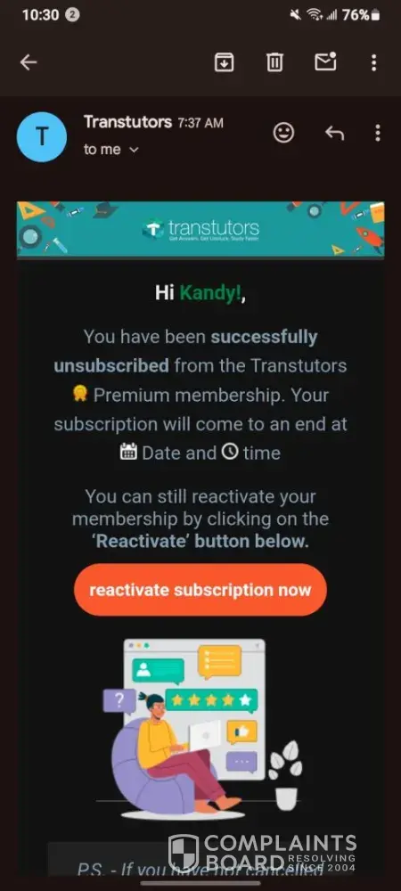 I sent an email to have my transtutor account deleted with no response, the premium membership is nothing but a scam as there is no how to cancel the subscription and they expect you to pay for every question you asked on the platform what is the essence of premium membership