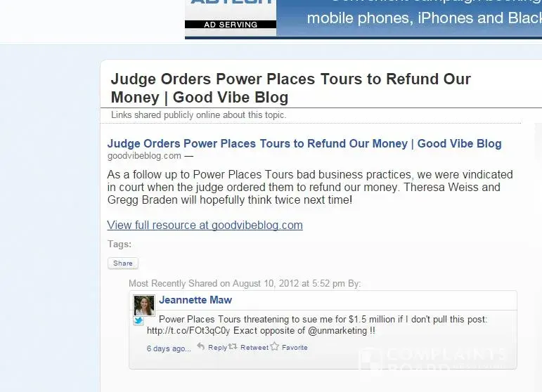 Lauri Wilmott, Executive Director of Gregg Bradens Press Office, is involved in a scandal that to quote him, uses a company called Power Places Tours, who have a track record in handling 'difficult situations'. Those difficult situations are handled by Gregg Braden condoning litigation fraud and people being ripped off in bad faith, and subjected to...