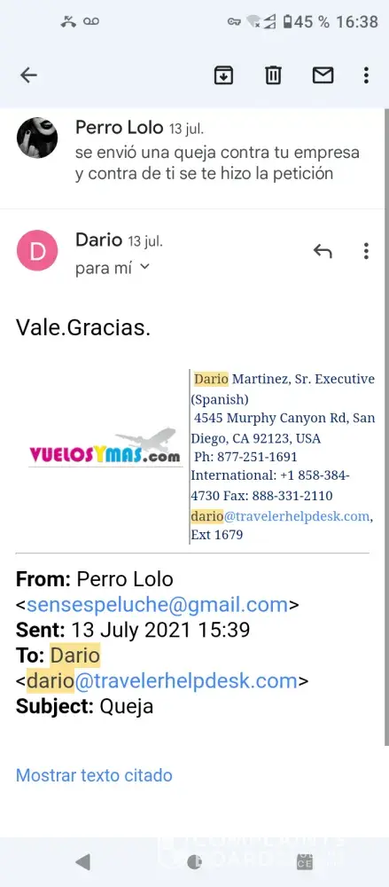 Now on July 19 2021 we get this letter from Travel Help Desk: