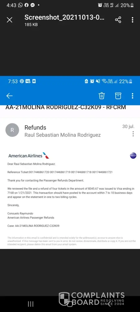 Now this is even more interesting to know that America Airlines had already issued the refund on July 8th to the TravelerHelpdesk. One of the customer service specialists at AA told me this morning when I called them.