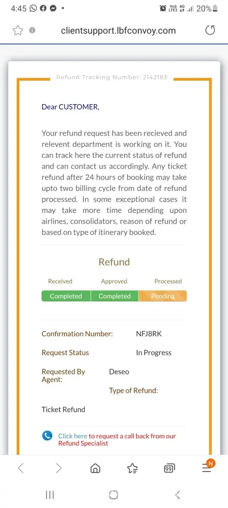 Please click here to check the details of your refund request, the current status and other terms and condition.