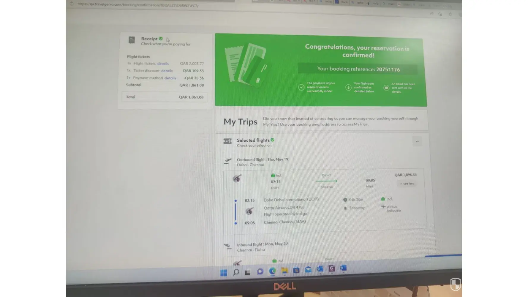 Desired outcome: need confirmation to travel may 2