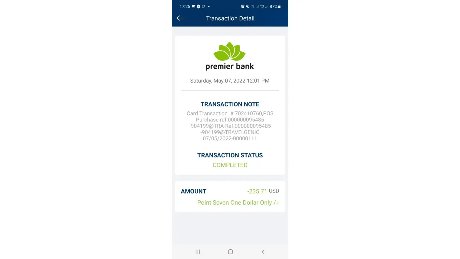 "The payment of the ticket has been completed through the American Express card ending in 8356."