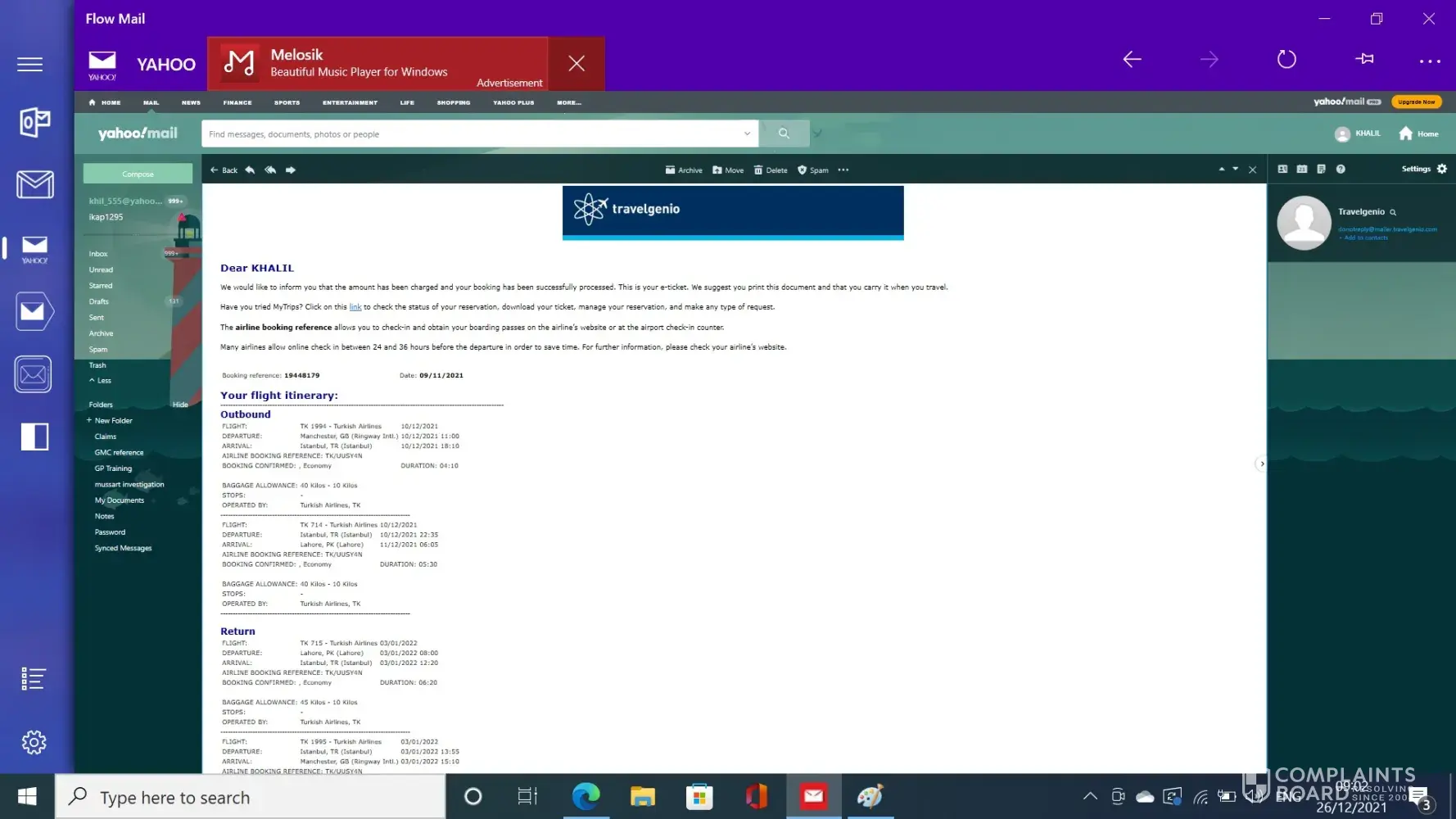 I booked my and my family (5 travelers) Return flights through Travelgenio on 9th Nov. 2021 from Manchester (UK) to Lahore (Pakistan) on Turkish airline.