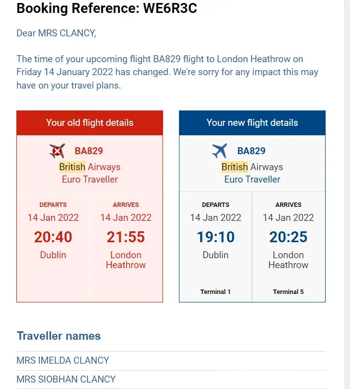 Passengers me Siobhan Clancy and my mother Imelda Clancy.