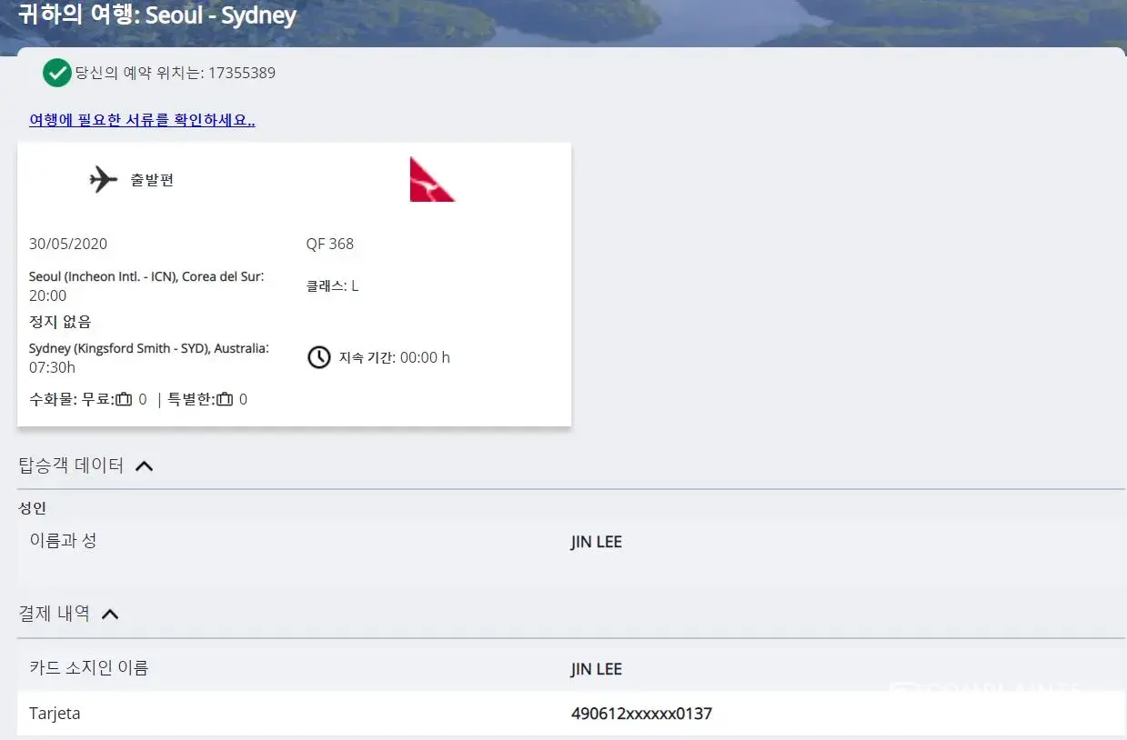 Hello, My name is Ryunghee Kim. I booked a flight on October 9th in September. Through the ‘Travelgenio Company. My ticket Reservation number is [protected] (JYAQCW), flight : OZ602. Asiana airplane, 10/9 SYD->ICN.