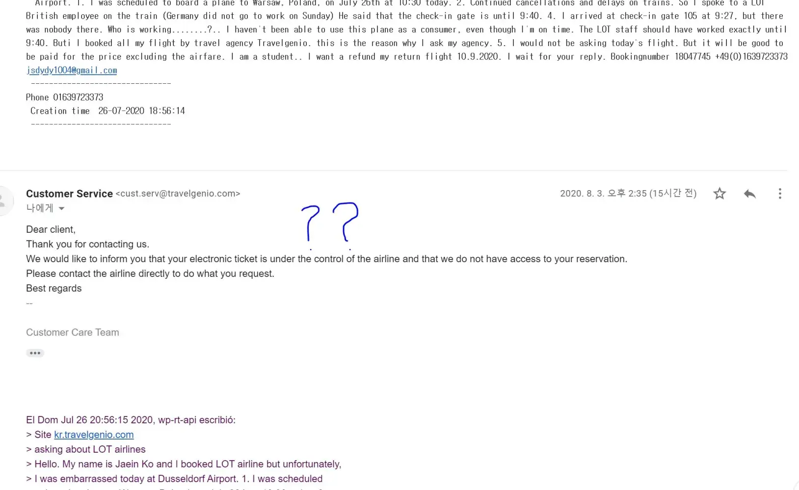 Hello, I have been notified from the korean air line that the money for the ticket was refunded to travelgenio on the 29th of July. If that is the case, I would like to receive all the refunded money as soon as possible. The booking number is M6WX57