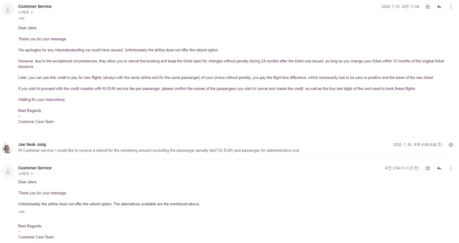 The tickets that I booked at Travelgenio is for coming back to Seoul and the agency imposed such a high penalty fee, even though they were the REFUNDABLE TICEKTS.