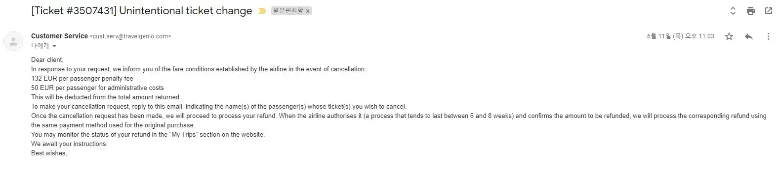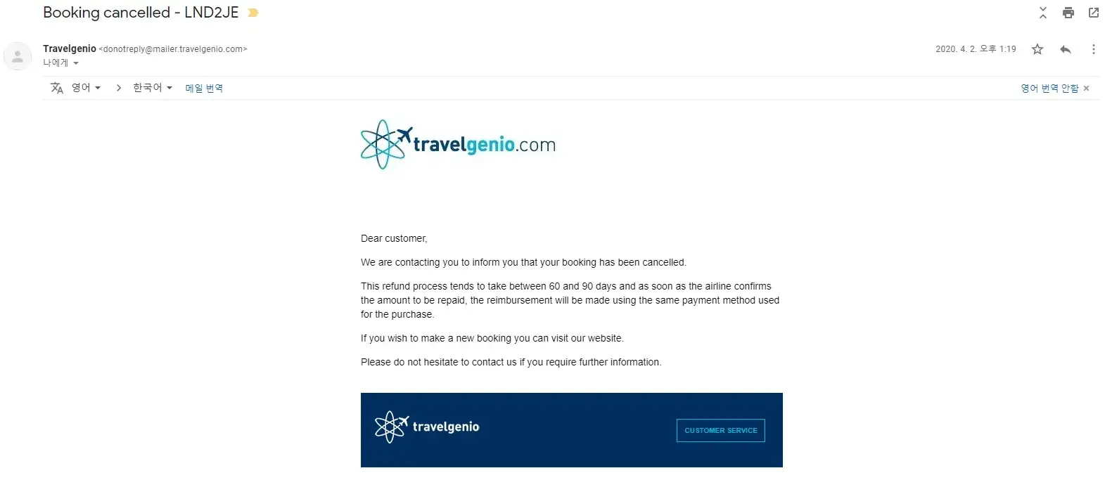 I booked two tickets at British airline(through a Korean agency, not travelgenio) departing from Seoul(South Korea) to the UK and received a full refund 3 months ago.