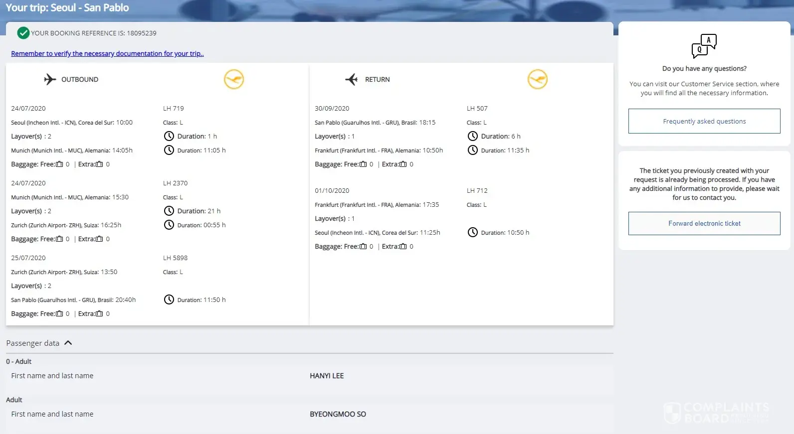Last 20th July, two employees of our company booked round trip tickets for Lufthansa Airway